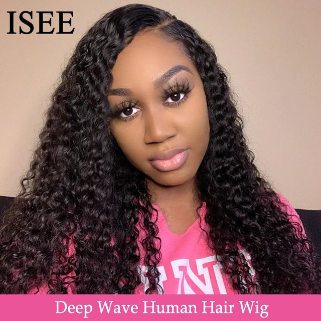 Brazilian Deep Wave HD 13X6 Transparent Lace Frontal Wigs 150% Density ISEE HAIR Wigs Loose Deep Wave Human Hair Wigs For Women