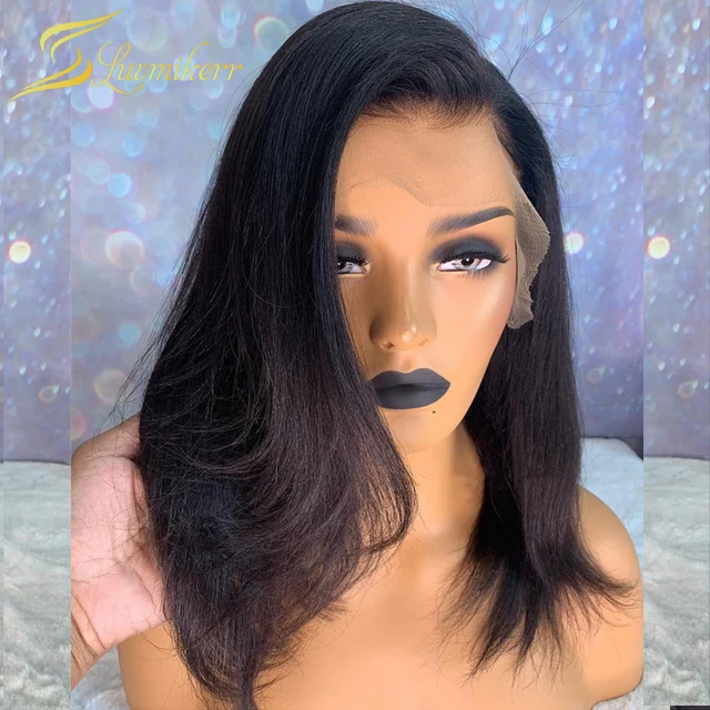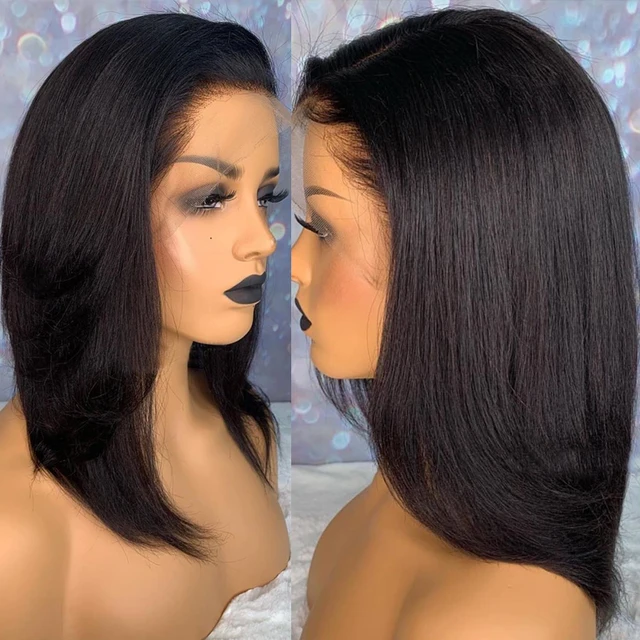 Blunt Cut Light Yaki Straight 13X6 Short Bob Full Lace Front Human Hair Wigs For Black Women Kinky Straight 360 Lace Frontal Wig
