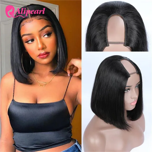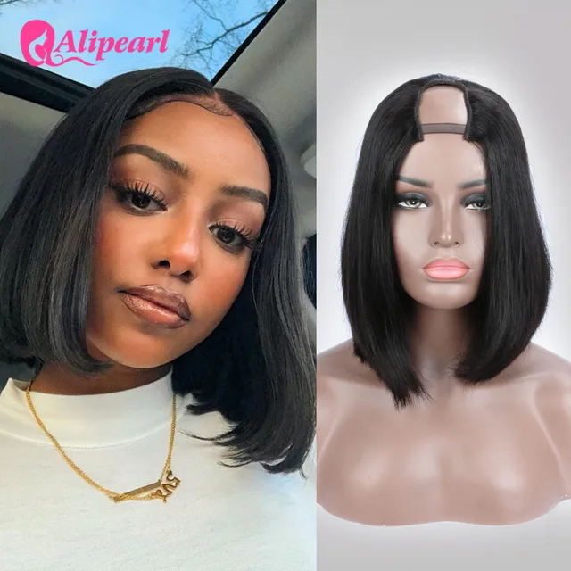 AliPearl Hair Straight U Part Bob Wig Brazilian Human Hair Wigs For Black Women Glueless Pre Plucked U Shape Wigs 180% Density