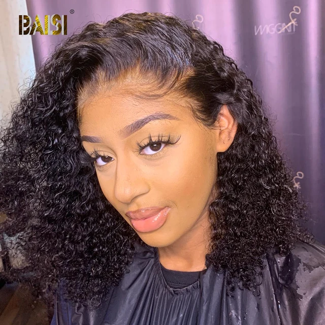 BAISI Curly Lace Front Wigs Human Hair Wigs With Baby Hair Curly Bob Wigs Lace Frontal Wig Glueless 13×4 Curly Lace Front Wig