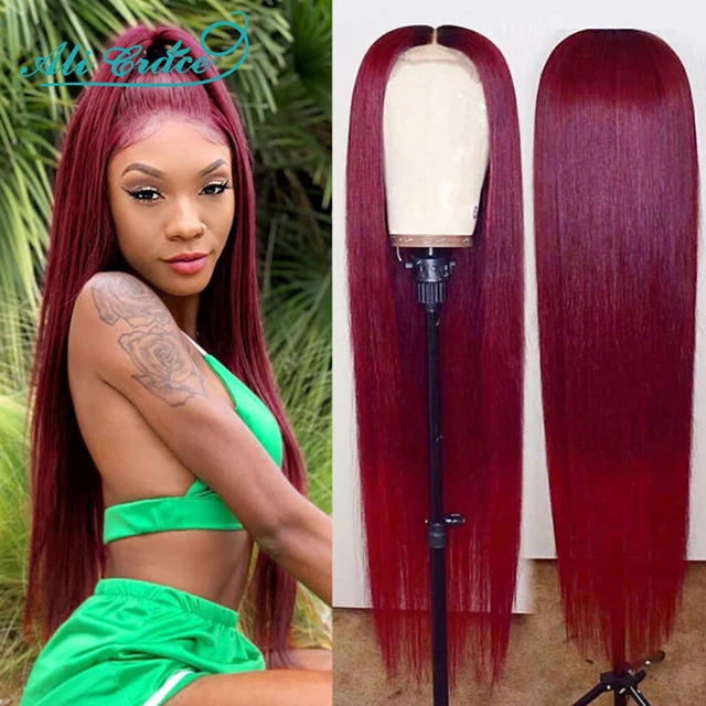 99J Closure Wig 10A Straight Lace Front Wigs For Women Ginger Orange Brazilian Straight Human Hair Wig Ali Grace Bug Red Wigs