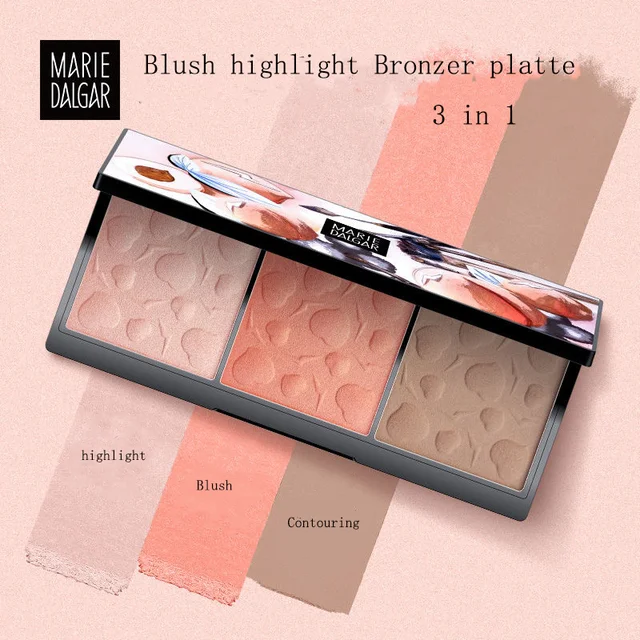 New 3 colors face Blusher highlighter makeup Palette face brighten contouring powder cosmetic palette Bronzer makeup tools